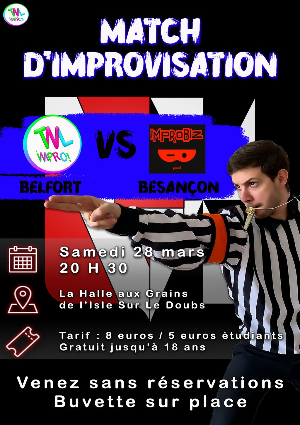 🔥 Match d’improvisation Ă la Halle aux Grains le samedi 28/03 đźŽ